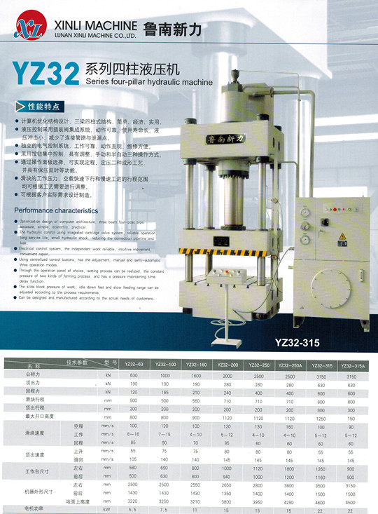 • 型號:???YQ32-315T四柱油壓機